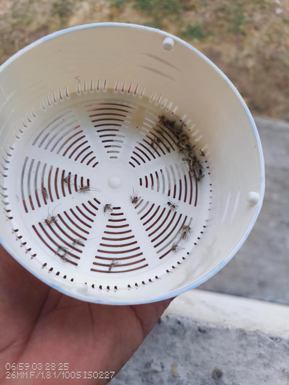 Empty the bottom compartment every 4–7 days depending on mosquito levels in your area. Just twist, empty, and reattach — no mess